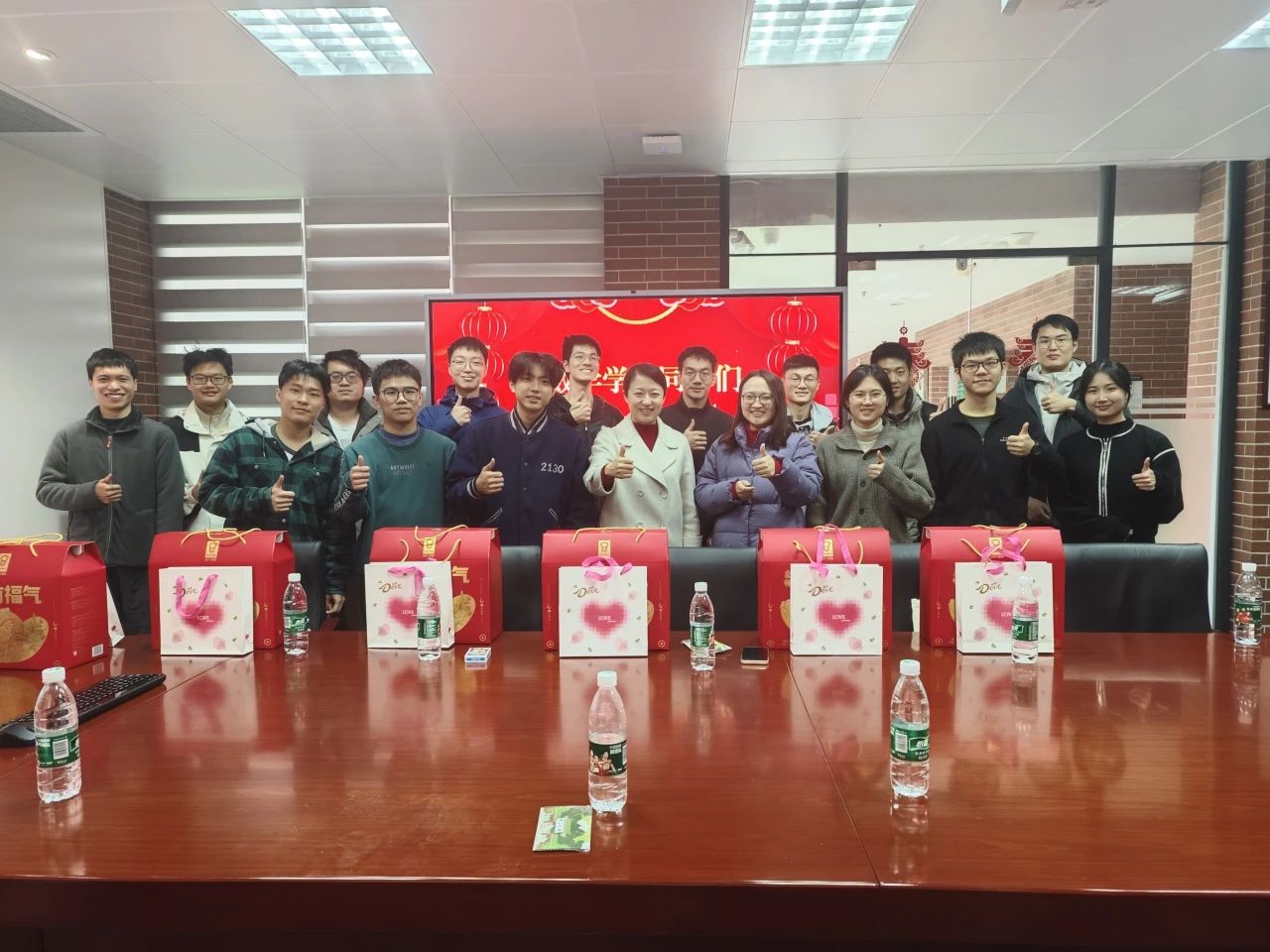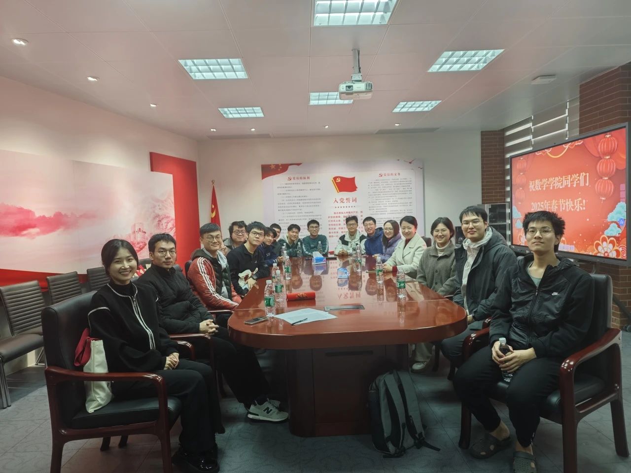 2025年1月26日,2025年乙巳春节到来之际,yl88858永利集团在新数学楼315室举办2025年春节留校学生慰问活动。学院党委副书记周妍老师、学院团委书记杨晓静老师、研究生教务姚璐老师以及粤港澳应用数学中心黄致远老师与留校同学欢聚一堂,喜迎蛇年春节。